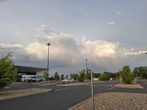 前日の予約で一泊39.18ユーロネットで申し込んで、メールにパスワードをもらって玄関で液晶画面に必要事項を記入後、パスワードを入れるとカギが開きます。ところが、予約時にもらったパスワードと後からメールで来たパスワードが別もので、時間が遅くて受付の人はいないし…とにかくメールのパスワードに気がつくまではドキドキハラハラしました。部屋に入る頃にはいろいろ疲れ果てていて写真をとるのをすっかり忘れてしまってました。唯一あったのが駐車場の写真です。↓ホテルの予約サイトの画像です。部屋は↓こういう部屋でした。シャワーはトイレとカーテンで仕切られていてめっちゃ狭かったです。洗面台は小さくて顔を洗うのが超難しく…体と顔を斜めにと工夫しながら洗いました。それでも肘を伝って水が下へポタポタしてしまう。あと、写真からはわかりませんが、かなり古い建物で、多分昔はフォーミュラ1とかそういうホテルだったのでは?と思われます。だからかカーペットとかも古く…古い何かの臭いかな?ちょっと独特な臭いが気になり自分のパジャマにお気に入りのコロンを少々ふってごまかしました。クーラーはなく、変わ