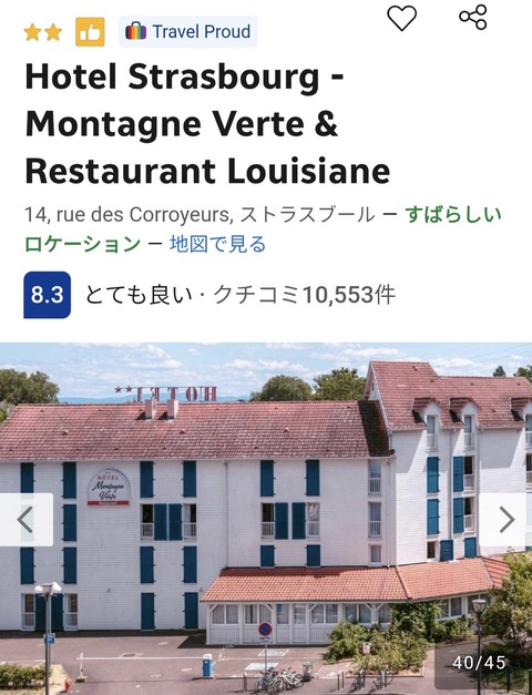 Hotel Strasbourg Montagne Verteホテル ストラスブールモンターニュヴェルト14 Rue des Corroyeurs, 67200 Strasbourg, フランス一泊56.20ユーロなり(朝食無し)ああ、こちらの写真もみつからなかったです。暑さと疲れでボ一っとしてたので色々忘れがちですね。↑こんな感じの所です。ストラスブールという立地からか?駐車場はほぼ満車で、1ヶ所だけなんとか空いていた所に駐めさせて頂きました。ホテルの受付けの方が日本語のできる方で大まかな事は日本語でやり取り出来てとても親切で感じの良い方でした。もしストラスブールで泊まるなら次もここかな?建物は古いものの部屋は綺麗で清潔、シャワーもガラス扉で仕切るタイプで水漏れなく安心でした。クーラーはついていませんが、自前のミニ扇風機でなんとかなりました。