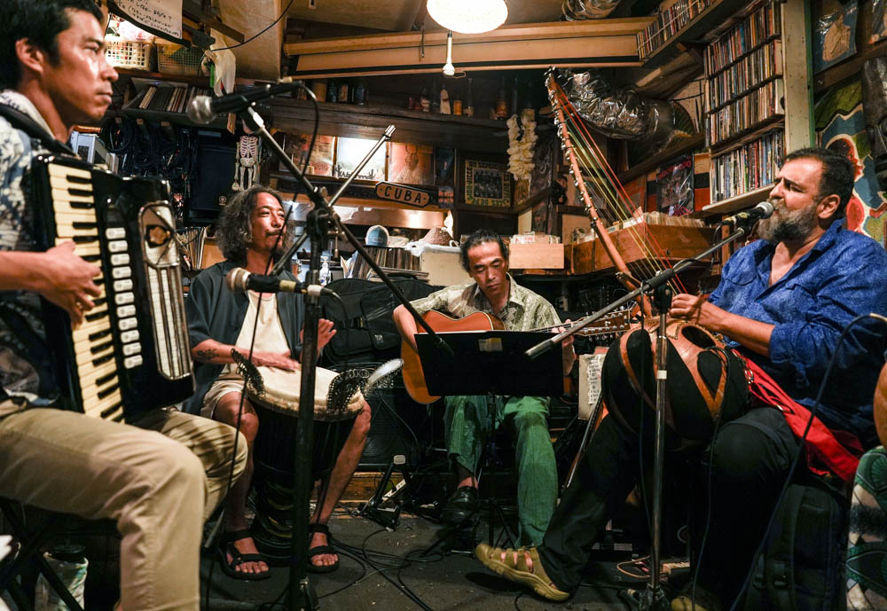 吉祥寺の公演では、グリゴリウが紹介する伝統楽器を用いた軽快かつ確かなテクニックに支えられた音楽を、バルカンダンス楽団LYAGASの大野慎矢、小沢あき、須藤昭人、そして自作のンゴニを携え参加したサプライズゲストのあらかり大輔が絶妙なミクスチャーで披露。駐日ギリシャ大使館の青木恵子氏をはじめ各地から集まった