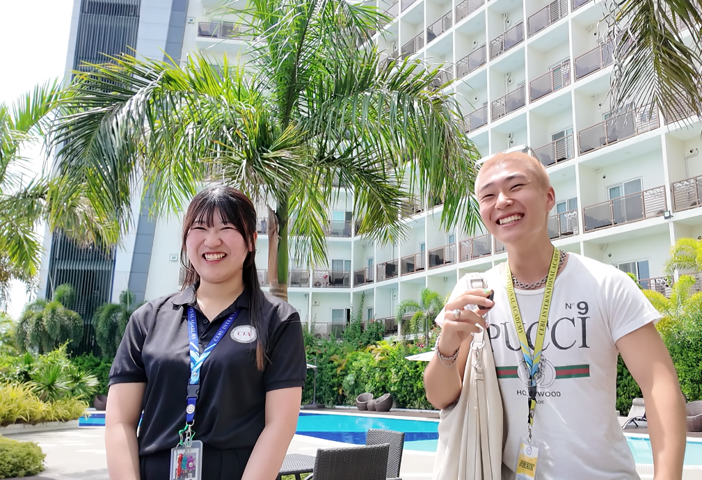セブ島のリゾート地のマクタンにあるCIAを訪問しました!私は今回3度目の訪問で、KJは初訪問です。なんと今回案内してくれるのは、2023年に留学Voiceの奨学金企画で留学したひめかさん! 当時高校2年生のひめかさんは留学Voiceの奨学金企画でCIAに1週間留学しました。その経験が忘れられず、高校を卒業してCIAに2度目の留学。留学期間を終え、いまではCIAの学生マネージャーとして働いています。 2年前は一緒に案内を受けましたが、今回はひめかさんが僕たちを学校に案内してくれます。なんとも感慨深いです…。 CIAはどんな学校 CIAはセブ島ですべてにおいてトップクラスの学校!リゾート地のマクタンに広大なキャンパスを構える語学学校です…