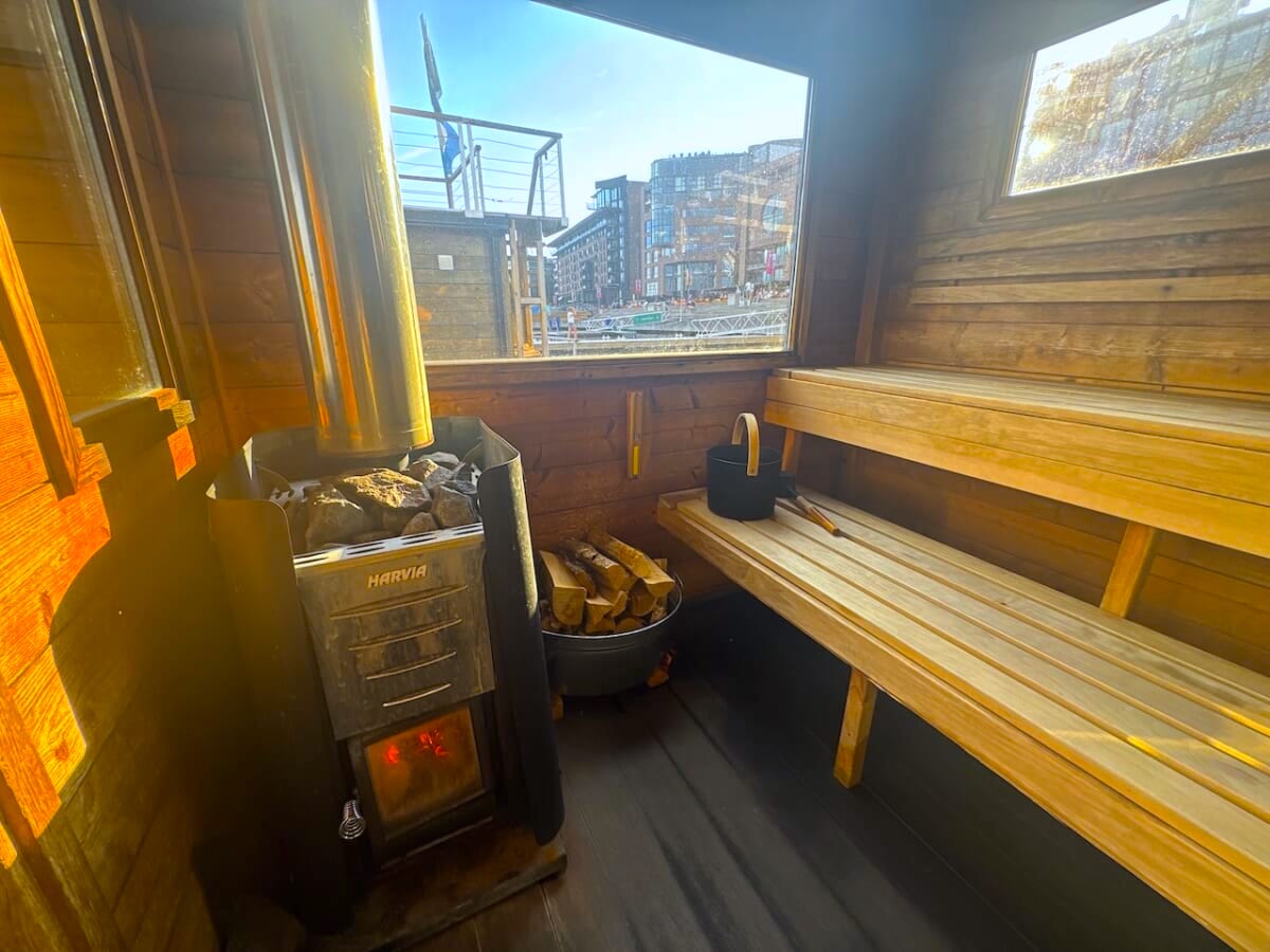 ノーベル平和賞の博物館・ノーベル平和センターからほど近いオスロのモダンなウォーターフロント地区、アーケル・ブリッゲに浮かぶ「KOK Oslo Sauna」は、まさに都会のオアシス。電気式サウナが多い中、ここではこだわりの薪サウナを体験できます。